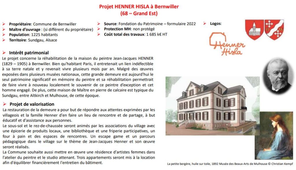 Le Projet HENNER HISLA vient d’envoyer son dossier de candidature pour lancer une collecte de dons à travers la Fondation du Patrimoine.
