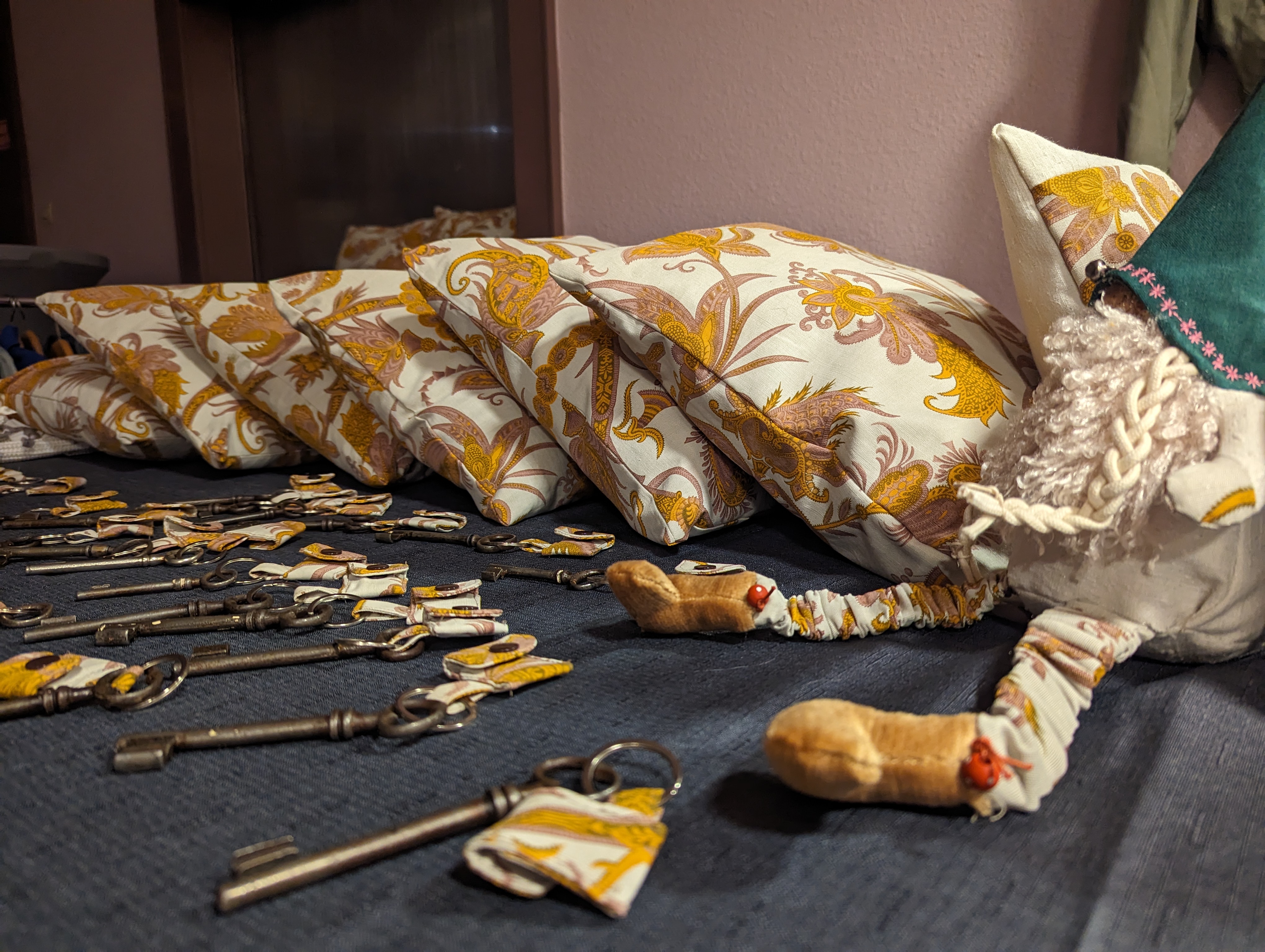 La soirée s’est poursuivie dans une atmosphère très conviviale, autour de pâtisseries confectionnées par des bénévoles, de toasts au fromage et pain du village, et de boissons. C’était l’occasion aussi d’acheter des porte-clés, coussins et lutins réalisés avec des rideaux provenant de la maison du peintre.