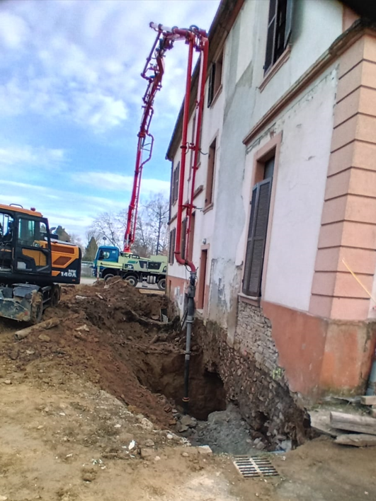 Le 27 novembre 2023, le premier coup de pelle pour le renforcement des fondations du bâtiment a eu lieu. Ces travaux, qui doivent durer au moins 2 mois sont indispensables pour garantir la pérennité de l’ouvrage.